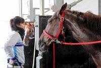 馬房内をグルグルと回る“旋回癖”のある馬だが「馬栓棒(馬が外へ出ないように馬房の入り口に渡してある棒)に工夫をしたら効果がありました。そこから馬がグンと良くなりました」と同助手。上昇一途の今なら1F延長は望むところだ。長いトンネルを抜けた松山が、今度は師匠に重賞Vを捧げる。