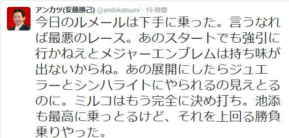 アンカツ(安藤勝己)@andokatsumi 16:23