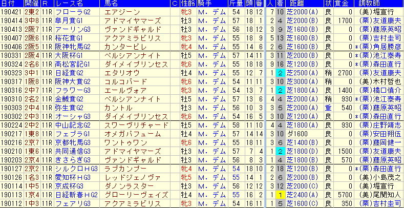 2019年Mデムーロ重賞成績