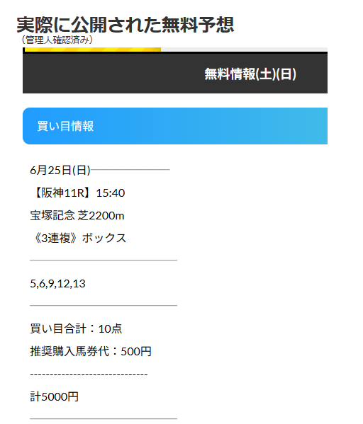 宝塚記念の無料予想(実際に公開された無料予想)