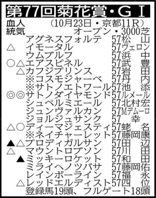 ◆第77回菊花賞・G1(芝3000メートル、23日・京都競馬場)