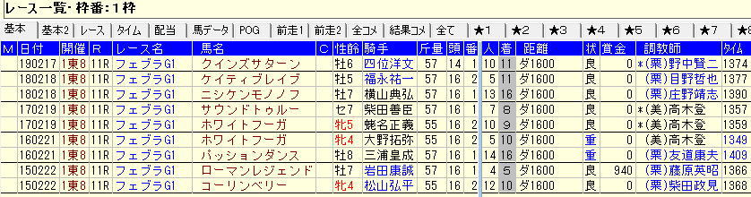 過去5年の中山芝2500m枠順別成績