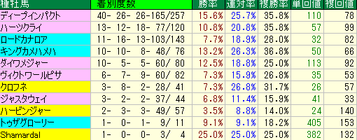 1)過去5年の東京新聞杯種牡馬別成績