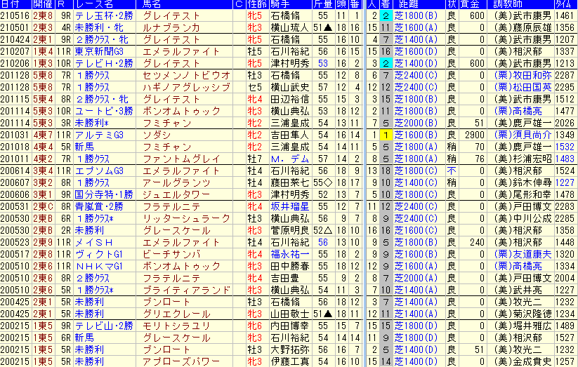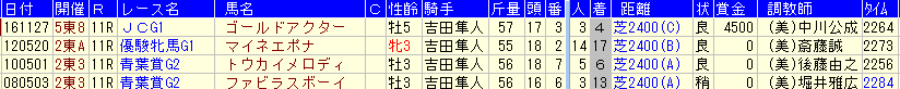 2) 吉田隼人騎手の東京競馬場芝2400m重賞成績![]()