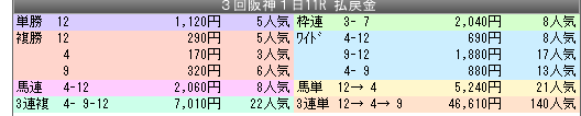 京都11R 3連複6-8-14(5,500円)的中