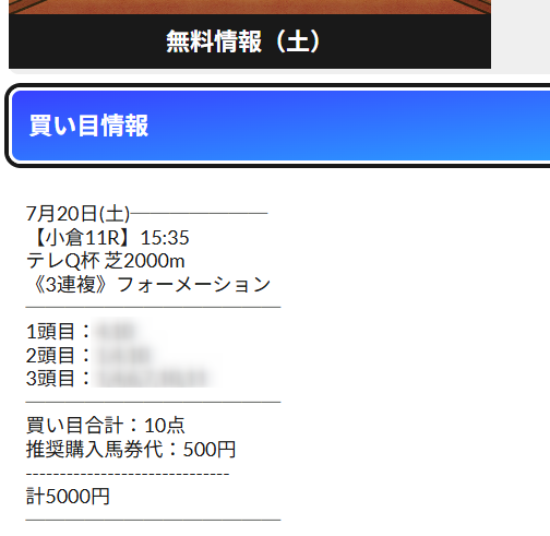 3連複の無料予想です。(ちなみに先週は函館2歳S的中でした)