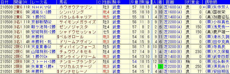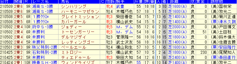 1) 2021春の東京開催芝でダイワメジャー産駒の不振