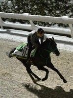 昨年末の調教中に外傷を負ったため、大事を取って追い切りを年明けに延ばした。だが、この日朝は前日からの降雪の影響で一部の馬場が閉鎖されるなどの影響が出た。時計が4ハロン57秒~58秒の予定より遅くなったのは誤算だが、1週前の12月28日には坂路で4ハロン53秒6-12秒4とびっしりと追っている。トレーナーは「外傷は問題ない。あした(3日)の馬場次第だけど、やりたい」と、直前調教で微調整を行う構えだ。