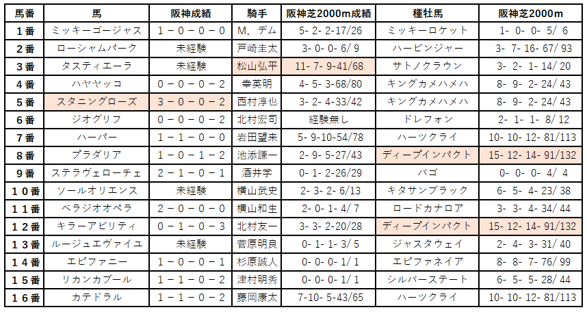 2)ロードカナロア産駒の阪神芝2200m(過去3年)