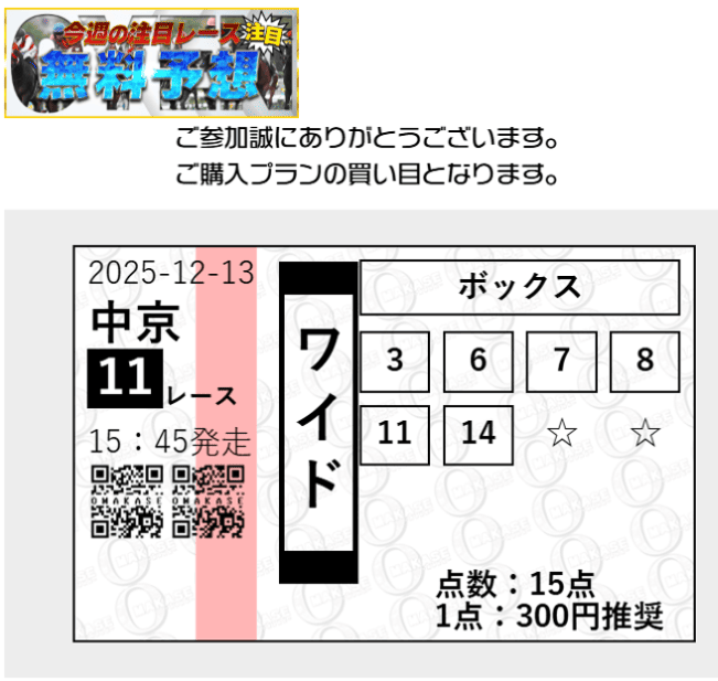 見解と買い目まで提示される形式のため、まずは内容の雰囲気を確認する用途として向きます。