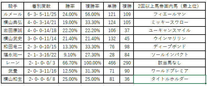 ※データは過去のレース成績および管理人調べによるものです。