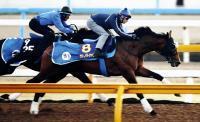 M・デムーロ騎手は「追い切りでもいつも一生懸命だね。前回と変わらないいい動き」と状態キープを強調。距離や道悪については「前走の最後の伸びなら3000メートルも問題ない。きょうの少し重い馬場でもいい走りだったし、道悪も悪くないよ」と前向きだった。