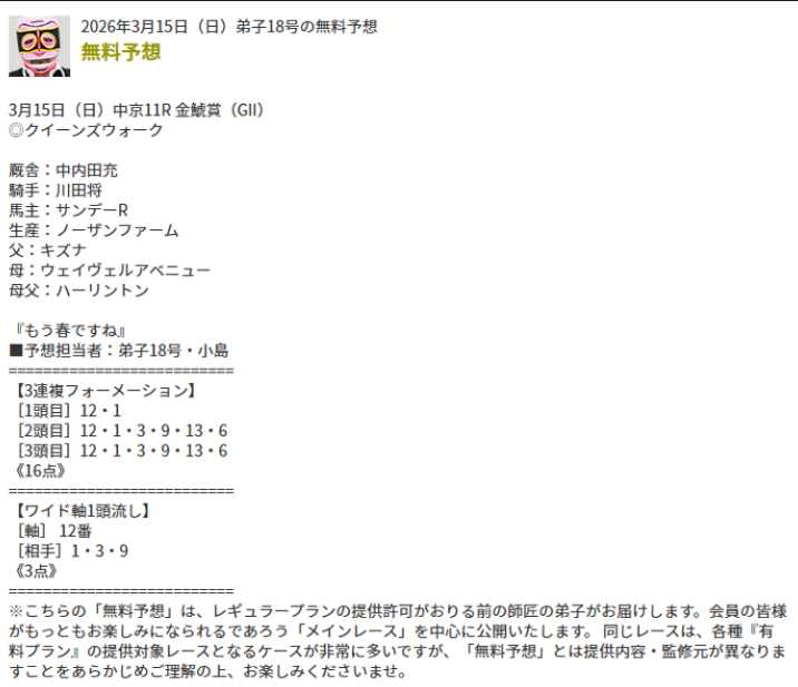 重賞週は、自分の予想だけでなく、無料公開されている買い目や見解を比較材料として見るのも一つの方法です。