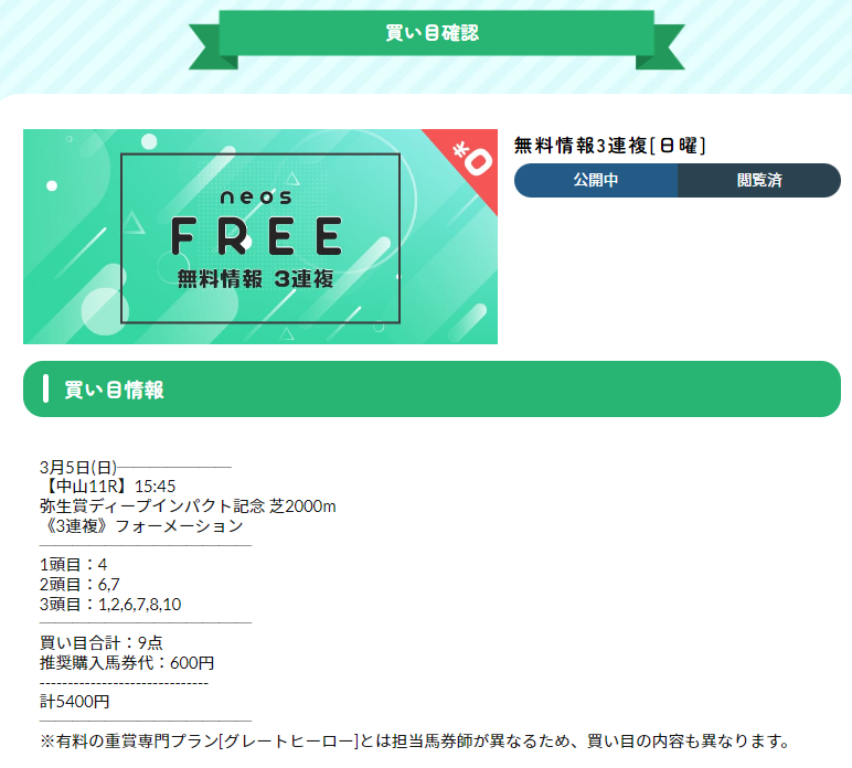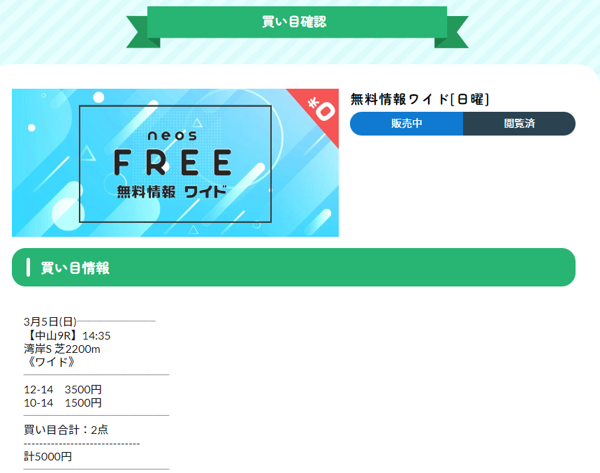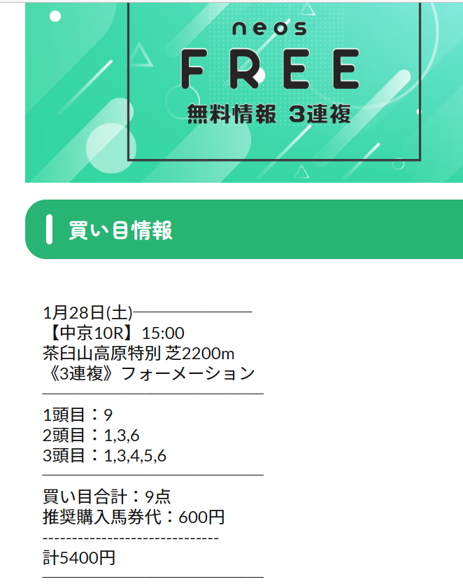 NEOSの無料予想は下記公式サイトから無料登録すると閲覧可能です。
